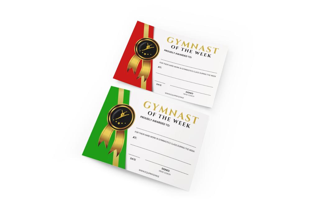 Using "star of the week" certs is no longer necessary with our custom made GYMNASTS of the week certificates. Make your gymnasts feel extra special with their very own certificate.