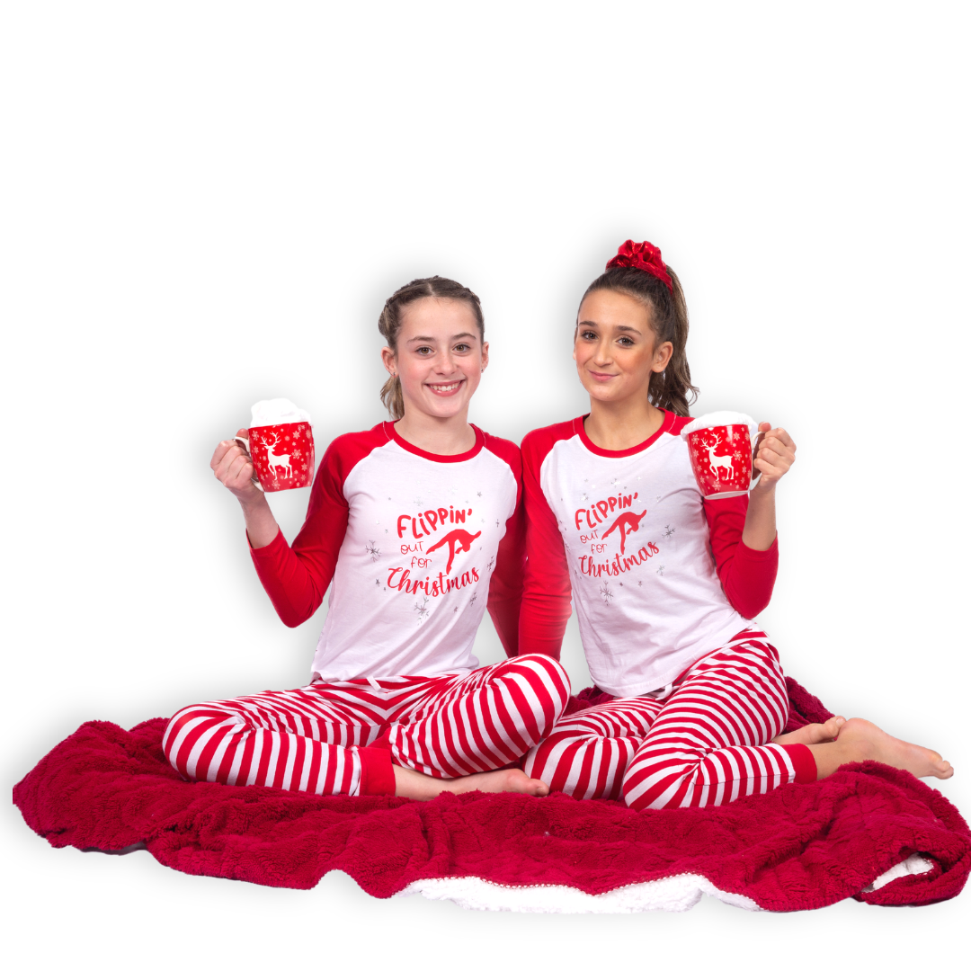 Get in the festive spirit with our new Christmas PJ set. These red & white cuffed PJ bottoms are soft to the touch, with a long-sleeve red & white long-sleeve PJ top to keep you extra cosy this winter season. They are the perfect set of PJs for any gymnast this Christmas.