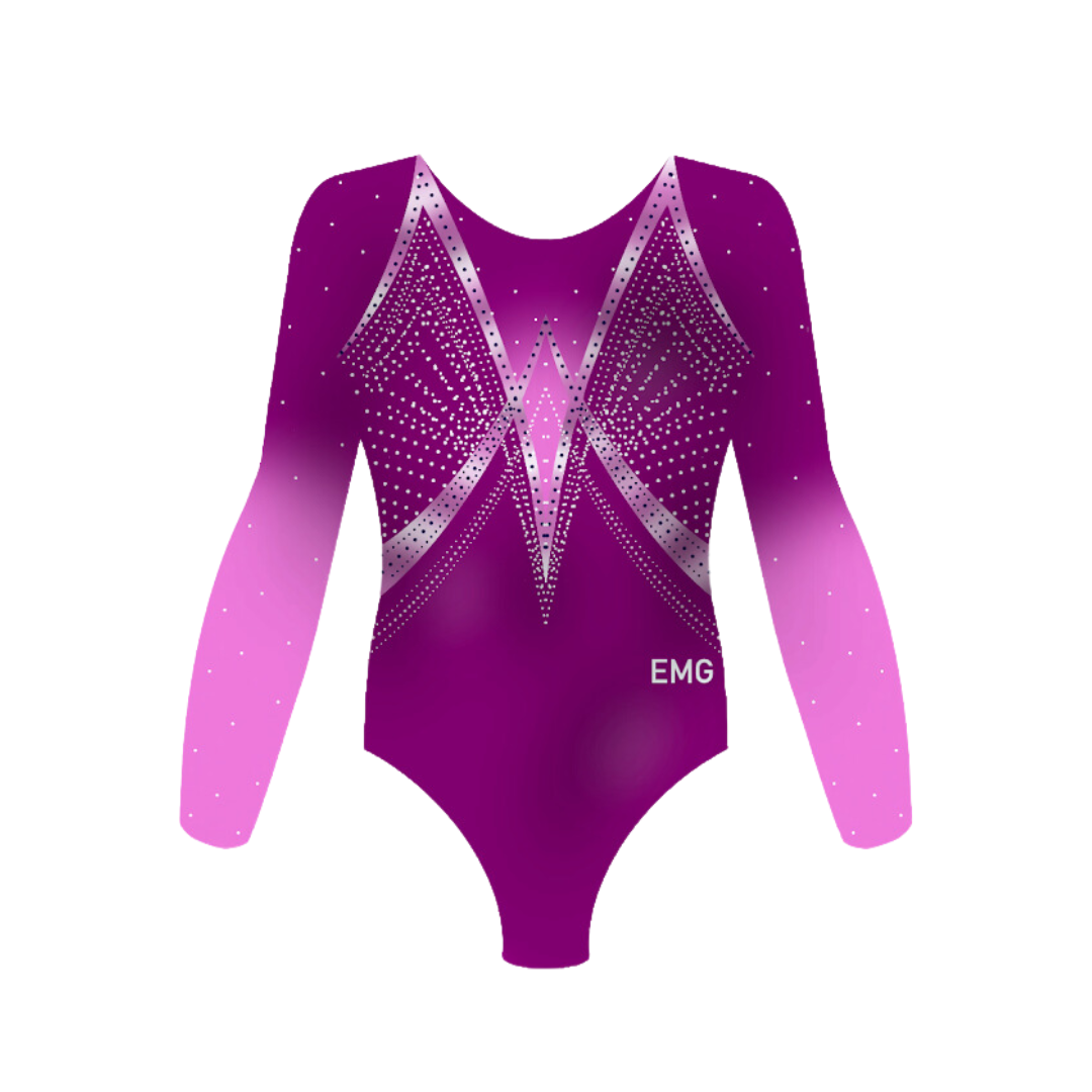 Make a statement with Mirage Muse Gymnastics Long Sleeve Leotard - a Mystique Magenta base, pink appliqué details and diamond accents- it's the perfect combo of sass and class make your mark with a magenta mesh masterpiece!