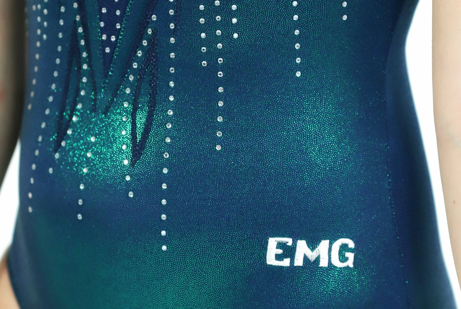 Its ornate details and mysterious fabric give this gymnastics leotard a mature and royal feel. It's definitely fit for a queen.